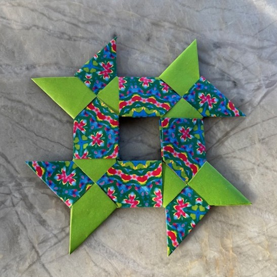 The popular ninja star is also known as a shuriken. Tomoko Fuse’s Shuriken Wreath uses four stars to create a bold, circular form. Let’s fold it!