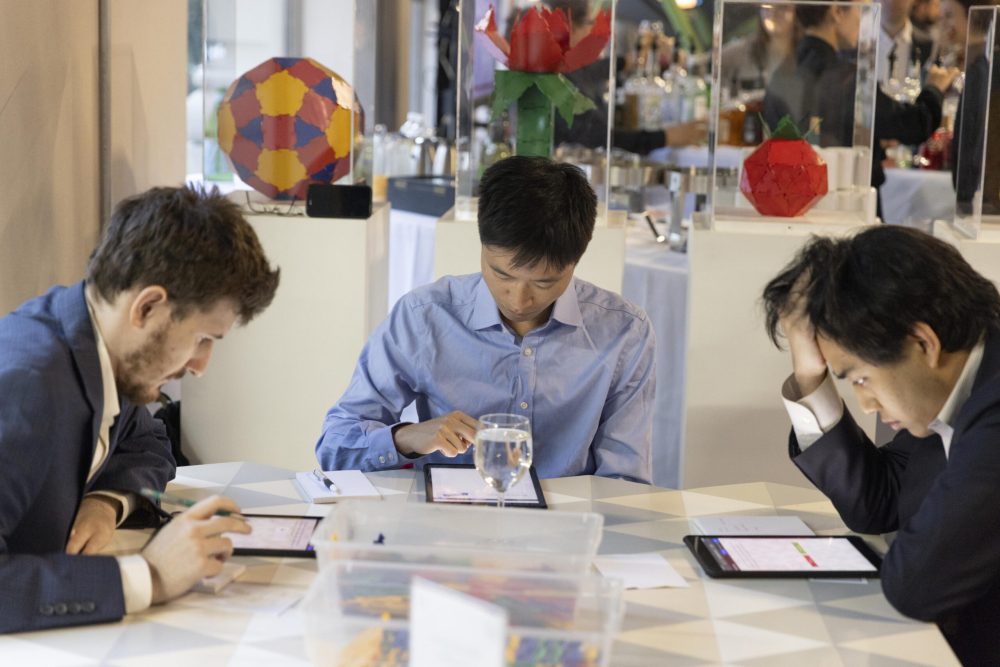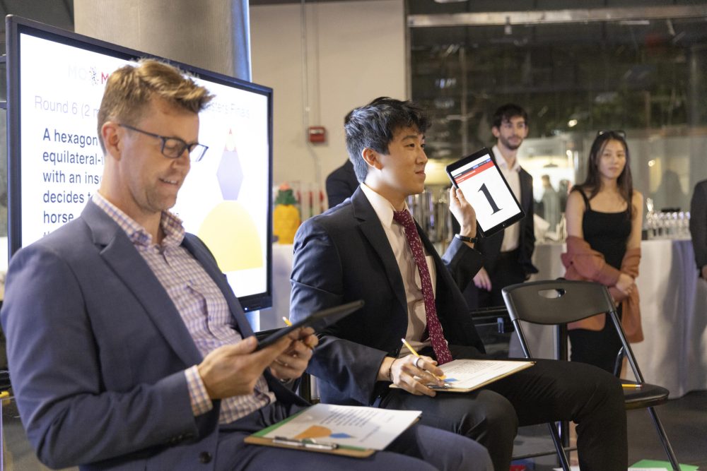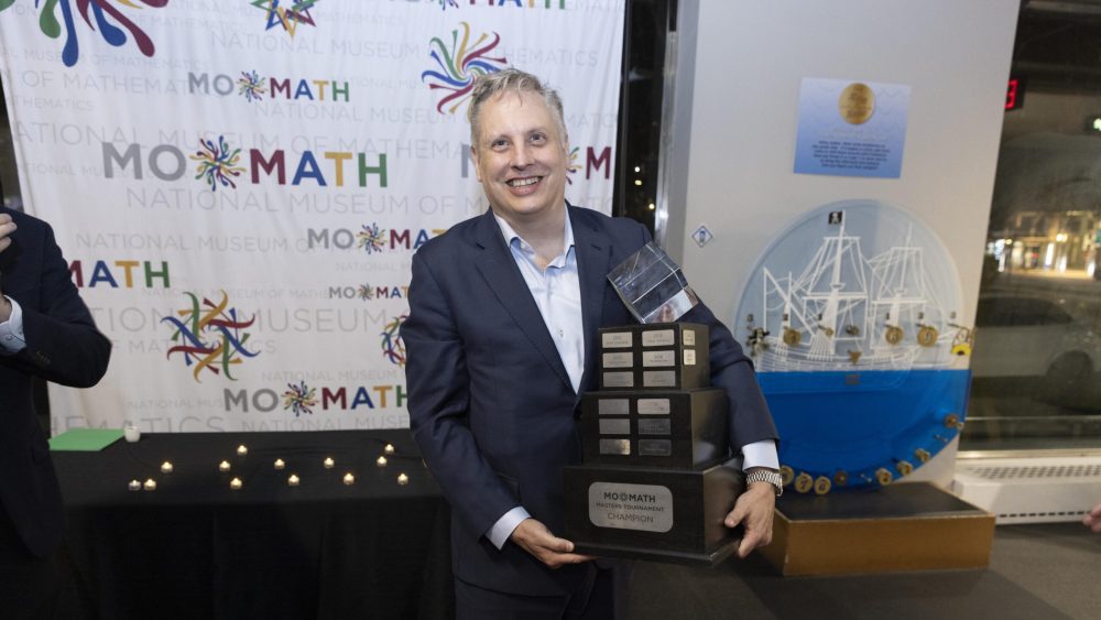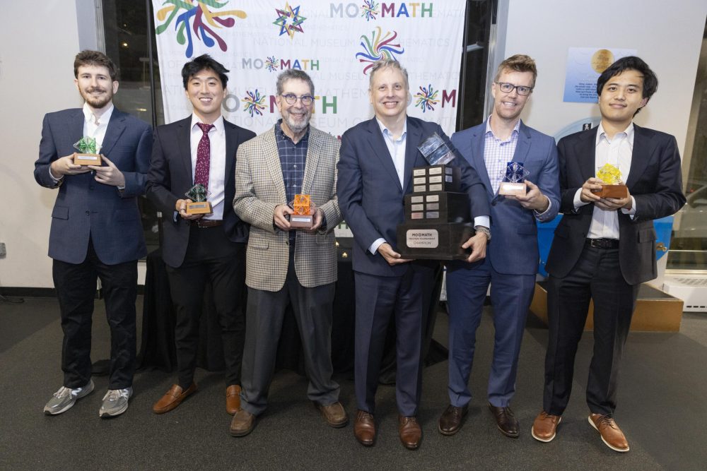 The Fall 2025 MoMath Masters was a special evening celebrating the beauty and excitement of mathematics. Hosted at MoMath, the event offered patrons a rare opportunity to explore the Museum’s exhibits without the usual crowds while enjoying the thrill of a spirited and challenging math tournament. Thank you to everyone who joined us for an inspiring night highlighting extraordinary mathematical talent and skill.