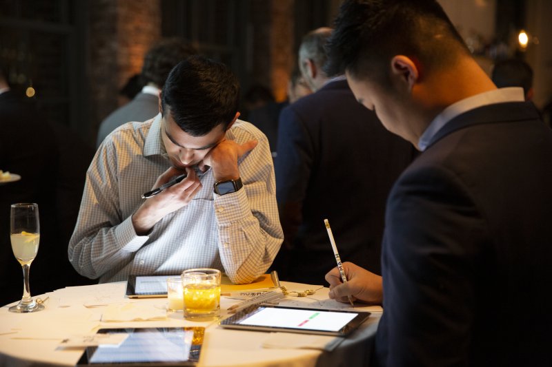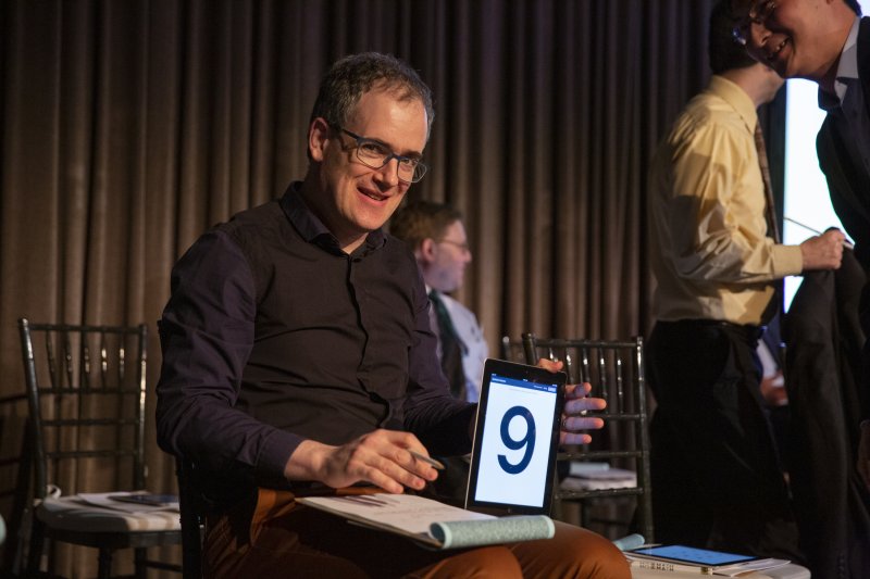The 2019 MoMath Masters included a battle between previous two-time first-place champions, John Overdeck and Geva Patz.