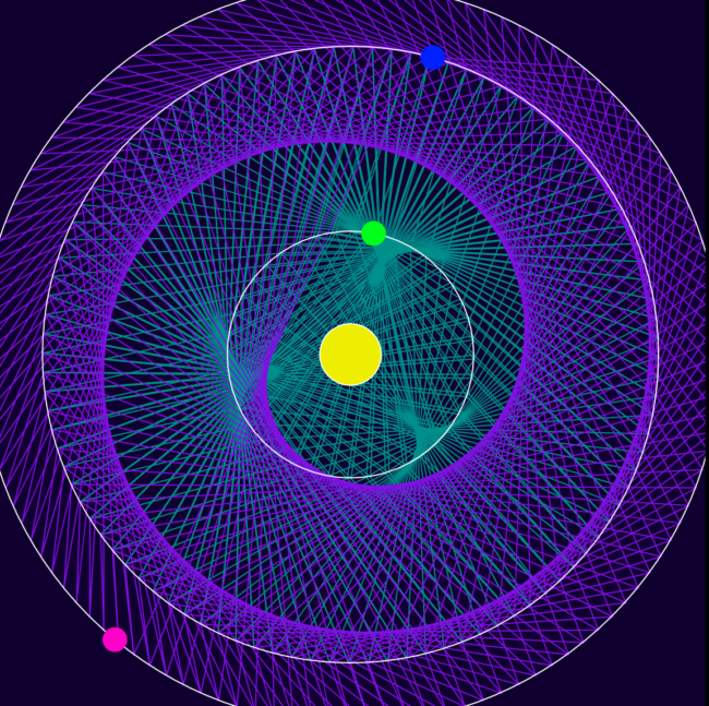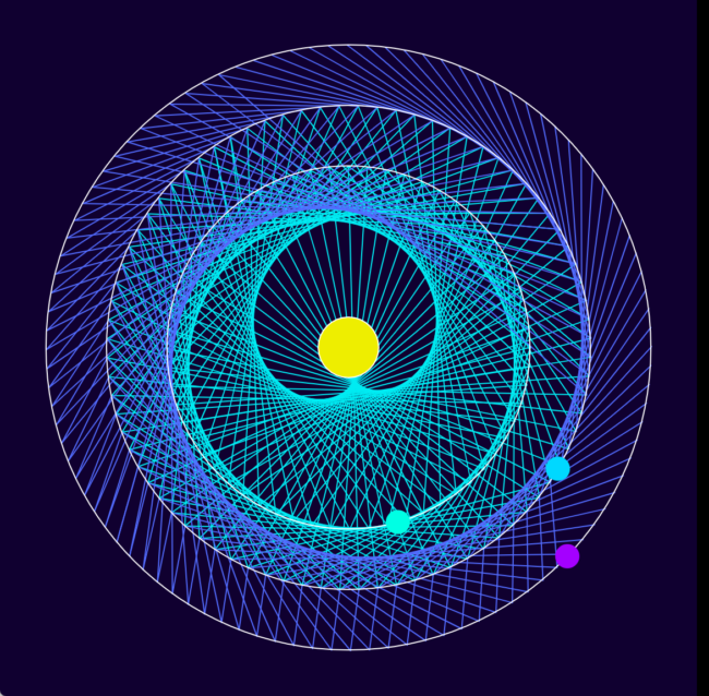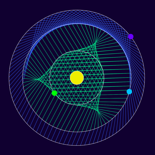 “My math communication project, Infinity Universe,” wrote Yvonne Hong, “is an illustrative yet mathematical depiction of the world in which we live. Every inanimate object illustrated represents a simple, yet ubiquitous concept in math: upon closer inspection, the monochromatic tree is a fractal Pythagoras tree, the galaxy in the background is constructed using the Fibonacci sequence, and the planet and comet are both different variations of the Apollonian gasket. Infinity Universe promotes the universality of math communication through an abstraction of objects and phenomena that people all around our world are familiar with.”